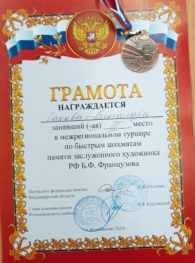 Кузьмина София заняла второе место, уступив чемпионке области. А. Александр и С. Александра заняли третье место в своих возрастных группах.