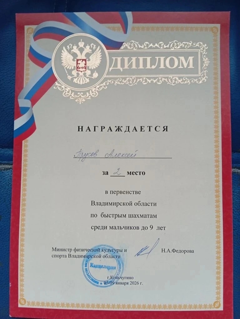 9 января в Кольчугино прошло Первенство области до 9 лет (2018 г.р. и моложе) по быстрым шахматам. В турнире приняло участие 7 юных шахматистов ЦВР под руководством молодого педагога Сабины Дуреян.